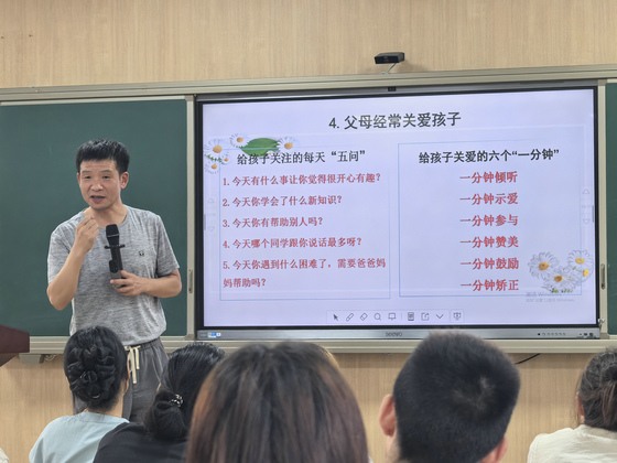这边仪式刚落幕,那边的家校共育讲座已热闹开场。在梦想教室及各班教室,未成年人教育指导专家张良校长带来“家校合力,走好小学第一步”主题讲座分享。从“如何跟孩子聊学校趣事”到“怎样配合老师培养习惯”,从“家长如何控制焦虑情绪”到“家校沟通的小技巧”,张校长用真实案例、通俗语言,把家长们关心的幼小衔接难题讲得明明白白。现场不时响起掌声,不少家长边听边记,纷纷表示“干货满满,这下心里有底了”。