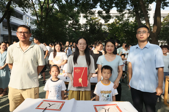 仪式尾声,冯校长为各班颁发“成长启航证书”,学生代表、家长代表与班主任共同接过证书,在相机前定格下这一珍贵时刻。