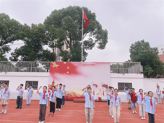 金秋送爽,丹桂飘香,我们迎来了伟大祖国76周年的华诞。为弘扬爱国主义精神,激发师生的民族自豪感和历史责任感,芙蓉小学五(4)中队承办了以“喜迎国庆,爱我中华”为主题的升旗仪式,为全校师生献上了一场庄严而充满深情的爱国教育课。