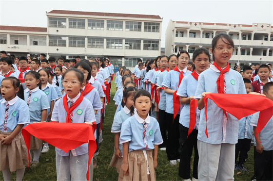 在大队辅导员颜静雯老师的带领下,新队员齐声呼号:“时刻准备着!”这是队员们对组织的承诺,更是他们对未来的期许。