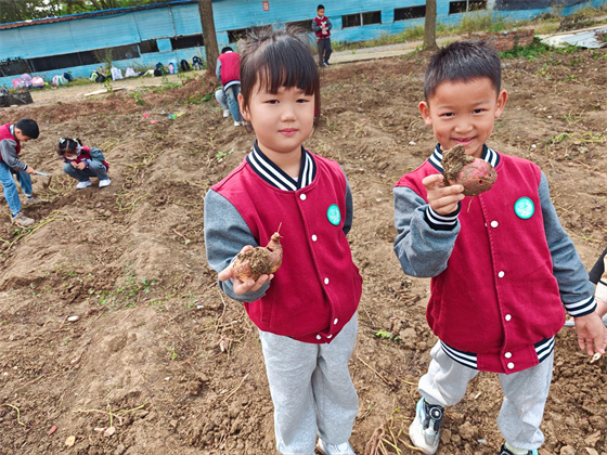 低年级的小朋友们来到佳农探趣乐园。豆香四溢的豆腐坊里,同学们体验了传统豆腐制作的过程。广阔的农田里,挖红薯活动将气氛推向高潮。同学们化身“小农夫”,挥舞小铲,在田垄间仔细搜寻“宝藏”。老师为大家讲解红薯的生长周期和营养价值,让劳动教育与农业科学知识完美结合。充满意趣的乐园内,娱乐项目丰富多彩。同学们在这里尽情释放自我,欢声笑语此起彼伏,整个乐园里都洋溢着欢乐的气氛。