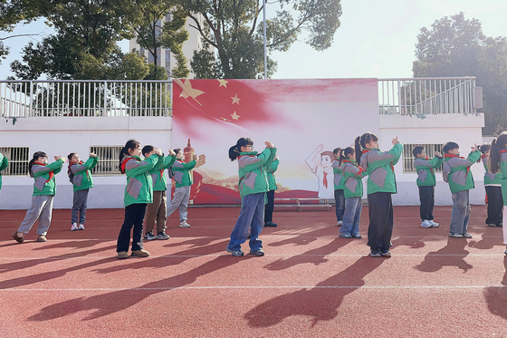 随后,中队队员带来充满活力的手势舞《少年有志》。动员们动作整齐划一,充满力量。通过肢体语言生动表达了强国有我的信念与少年昂扬的志气。短短几分钟的“微锻炼”,不仅让队员们的身体在寒冷中苏醒,更让积极向上的精神在集体共振中得到升华,实现了艺术、体育与德育的巧妙融合。