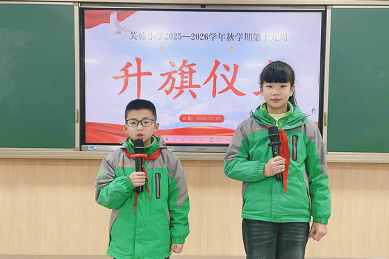 寒冬料峭,岁启新章。1月5日上午,芙蓉小学在梦想教室举行以“小寒砺意志,拼搏正当时”为主题的升旗仪式。本次升旗仪式由三(2)中队承担,全体师生观看钉钉直播,共迎2026年首个升旗仪式。